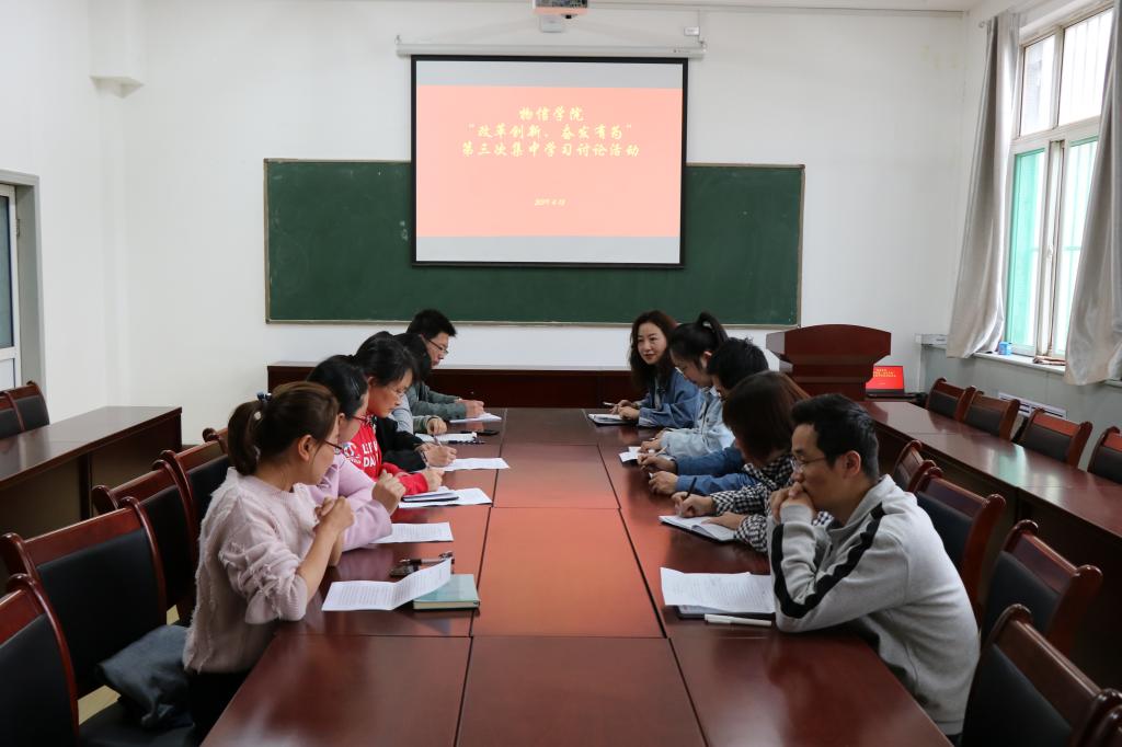 2019年4月15日下午5:00,黄色漫画 在四号楼二层多功能会议室召开“改革创新,奋发有为”第三次集中讨论学习会。来自物理学专业、电子专业以及行政管理岗位的9名教师参加了此次讨论,长治学院电子信息与物理系党总支副书记王志军参加了会议,会议由院党委副书记王玮主持。