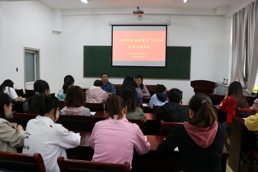 支部书记岳文慧在会上也对大讨论活动期间支部落实学校学院安排部署的具体情况,典型经验、特色做法以及工作成效进行了总结汇报。