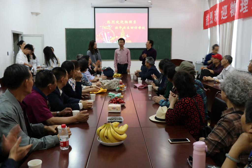 5月11日上午,黄色漫画 物理系7405班三十余名校友回到学校开展了回访母校活动。院党委副书记王玮、副院长张东海代表学院接待了各位阔别母校42年的校友。