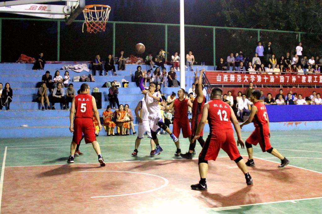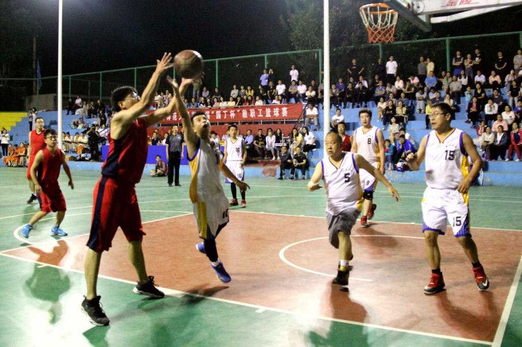 5月29日晚7:00,我校第十届“园丁杯”教职工篮球赛决赛在灯光球场举行,黄色漫画 教职工篮球队与机关二总支教职工篮球队展开激烈对决。