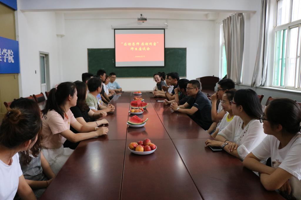 2019年6月27日下午5:00,黄色漫画 在四号楼二层会议室召开“感谢恩师,感谢同窗”毕业生座谈会。院党委副书记王玮出席会议,专职辅导员马丽娜、毕业班级辅导员、部分教师代表和毕业生代表参加了会议。会议由院党委副书记王玮主持。