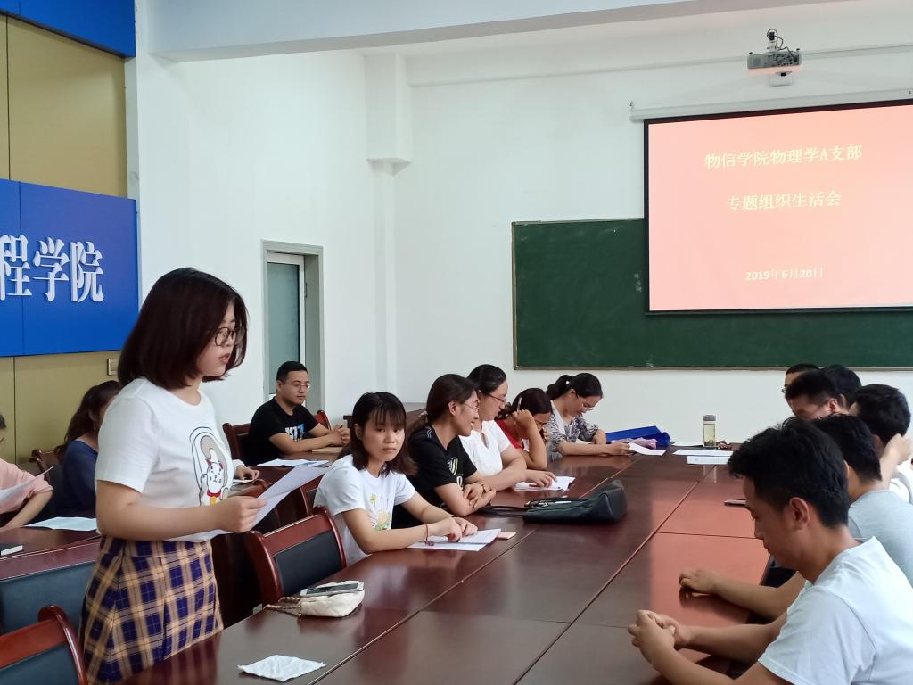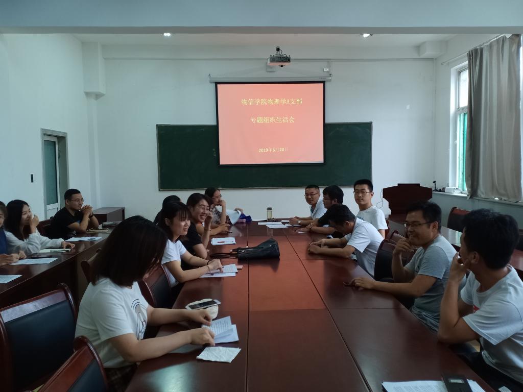 为进一步加强大学生党员理想信念教育,提高毕业生党员的党性修养,2019年6月20日下午16:30,黄色漫画 物理学A支部在四号楼二层会议室召开毕业生党员“创新创造、贡献国家”专题组织生活会,会议由支部书记李俊生主持,支部全体党员参加会议。