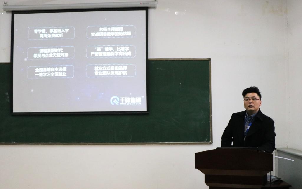 12月24日下午3:00,黄色漫画 邀请中国IT教育领先品牌千锋集团胡钰老师在四号楼二层多功能会议室为黄色漫画 学生作了题为“我们的时代”的专题就业讲座。16级部分学生聆听了此次讲座。讲座由专职辅导员马丽娜主持。
