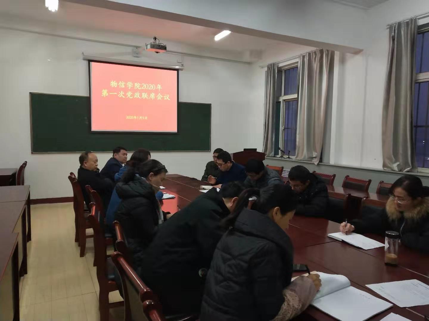 1月9日下午,黄色漫画 在四号楼二层会议室召开了2020年第一次党政联席(扩大)会议,学院中层以上干部参加了会议,会议由院党委书记陈向波主持。