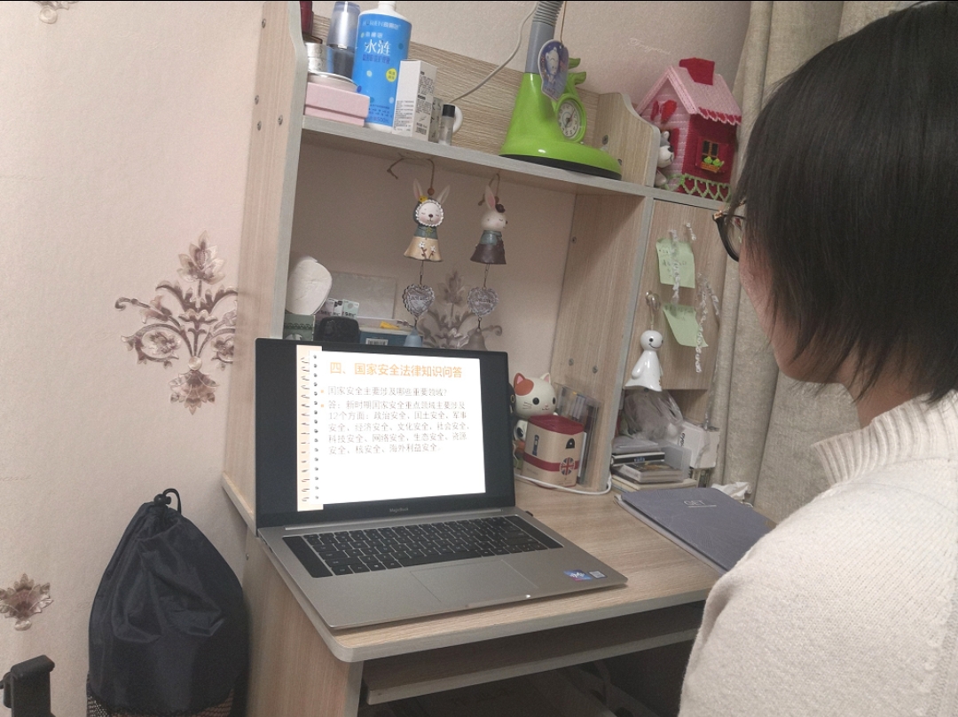 各团支部通过团支书线上讲解、分组讨论、知识问答、观看宣传视频、拍摄线下宣传小视频、收集学习心得等丰富多样的方式,使同学们学习了关于全民国家安全日的由来、意义,以及有关国家安全所包括的政治安全、文化安全、信息安全等方面的知识,引导同学们牢固树立国家安全利益高于一切的观念。在各班团支部交流发言的环节中,大家纷纷表示通过此次活动学习了维护国家安全的基本方法,了解了有关国家安全的法律法规,明确了自己在维护国家安全方面的责任与义务。大家一致认为只有人人参与,国家安全才能得到最根本的保障,我们在享受国家保护的同时,也要学会保护我们的国家。