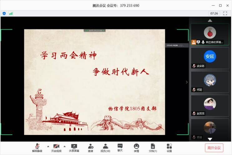 此次团日活动的召开,让同学们及时的接收到两会传递出的时代“最强音”,引导同学们关注国情、紧跟时事,把自身的成长融入国家与时代的发展中,把自己的理想同祖国的前途、民族的命运紧密联系在一起。(文/1906 王娜 1805 韩忠泰)