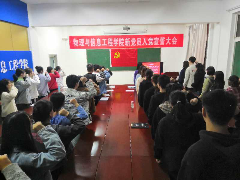 在激昂的《国际歌》歌声中,庄严的新党员入党宣誓大会拉开了序幕。在宣读了新党员名单后,领誓人带领全体与会人员在鲜红的党旗下庄严宣誓。宣誓结束后,新党员代表高艺霖、入党积极分子代表张跃鹏分别进行了发言。
