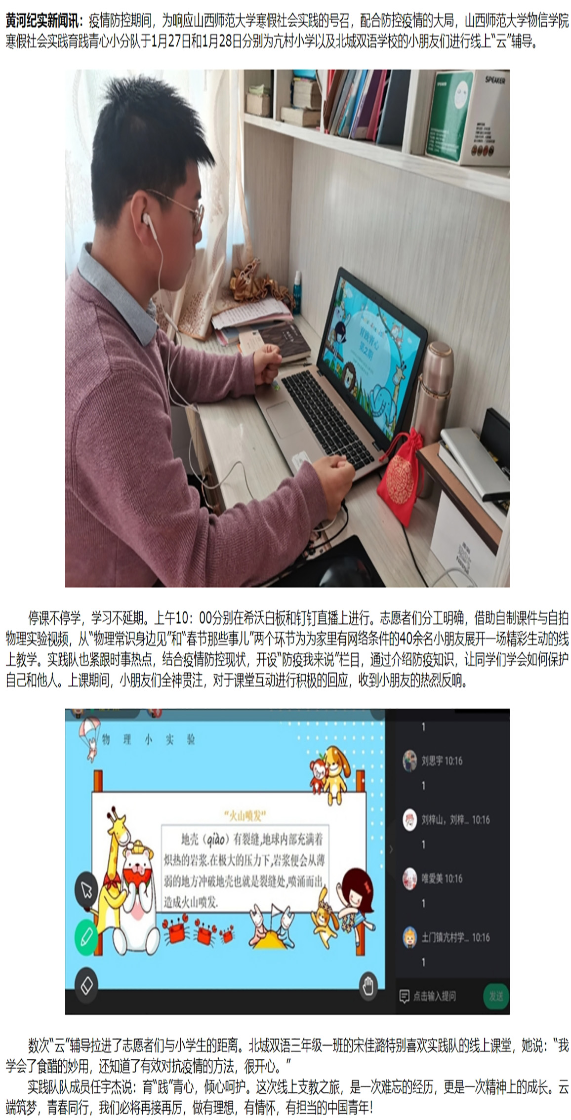 黄河纪实新闻网、临汾日报报道黄色漫画 大学生志愿者为小学生进行线上“云”辅导活动
