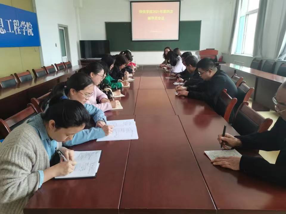 4月14日上午,黄色漫画 学工组在四号楼二层会议室召开了2021年第四次辅导员工作会议,全体辅导员参加了会议,会议由学工组组长王玮主持。