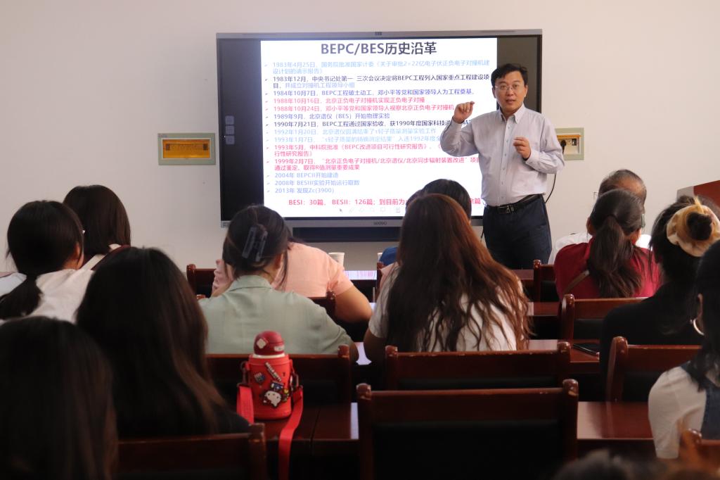 讲座上,李海波带领大家学习物理学中一些基本知识点,介绍了超子的基本概念和BESIII实验以及如何研究等一系列问题,细致地讲解了BESIII实验的操作原理和研究方向,并列举了近几年许多超子物理的实验研究成果,鼓励大家积极参与研究,争取在这个方向上做出成绩。大家纷纷表示,听完本次讲座后受益匪浅,对超子物理有了很深刻的了解,深受启发。