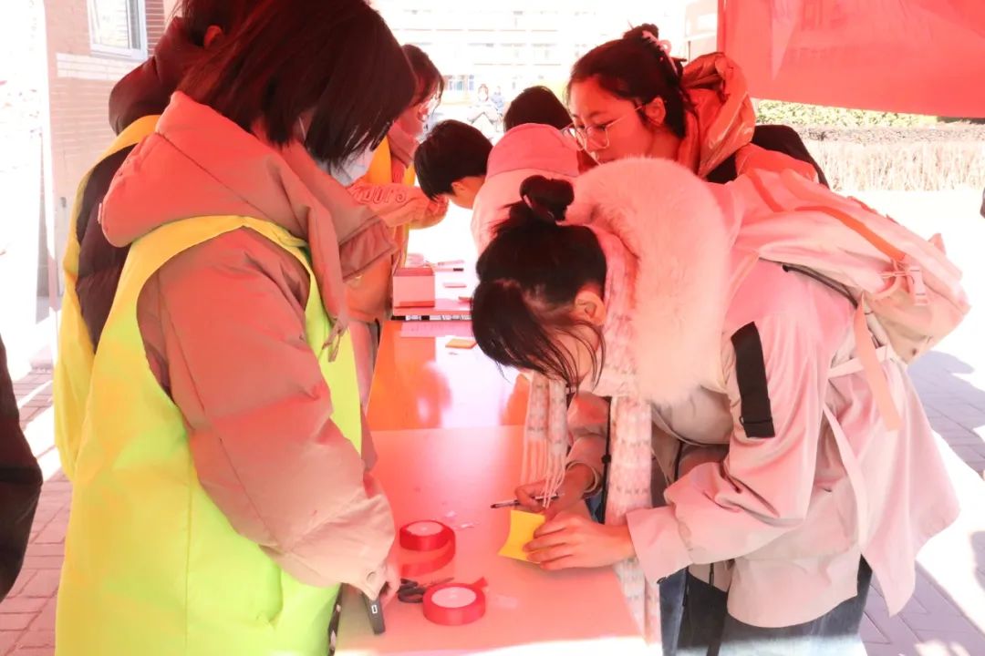 236爱心社帮助大家拍摄视频,通过视频记录和传播对艾滋病病人的尊重与鼓励;“励耕”青协的与“艾”同行和为“艾”传递环节,大家有的在便签上写下祝福,有的则通过在贴满红丝带的树形版前拍摄祝福视频,为艾滋病患者送上自己的爱。