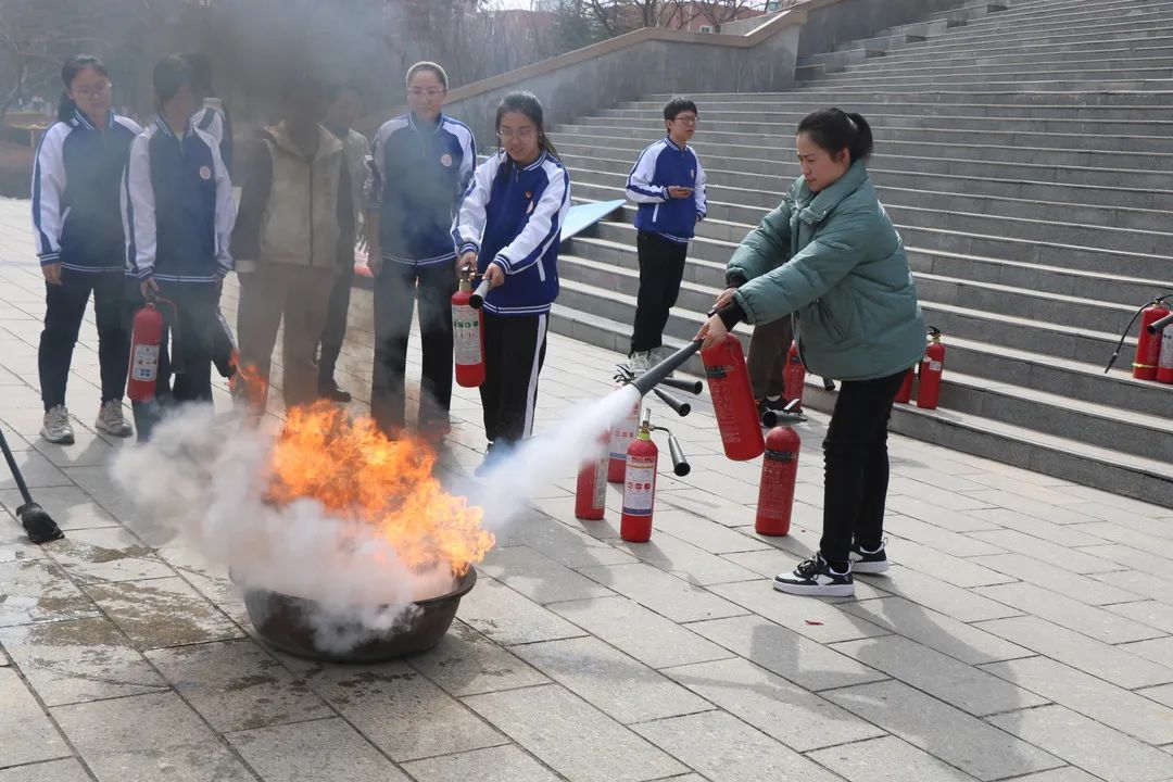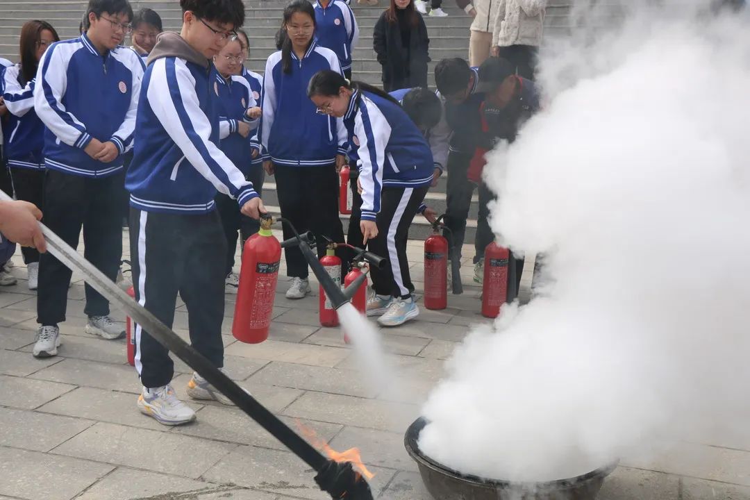 疏散完成后,崔哲老师对本次疏散演练作了点评,并为大家详细讲解并演示了灭火器、消毒面罩、灭火毯等消防设备的正确使用方法。全体师生认真学习、积极参与,亲身体验了灭火器的操作过程,进一步掌握了灭火技巧。整个演练过程既紧张激烈,又有条不紊。