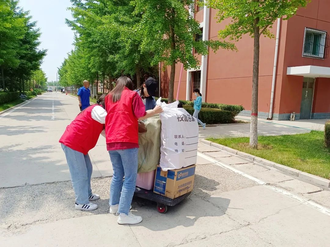 236爱心社组建了绿色离校志愿服务队,开展“情暖校园,温情送别”志愿活动,帮助毕业生搬运行李,送上诚挚的祝福,确保他们安全离校。