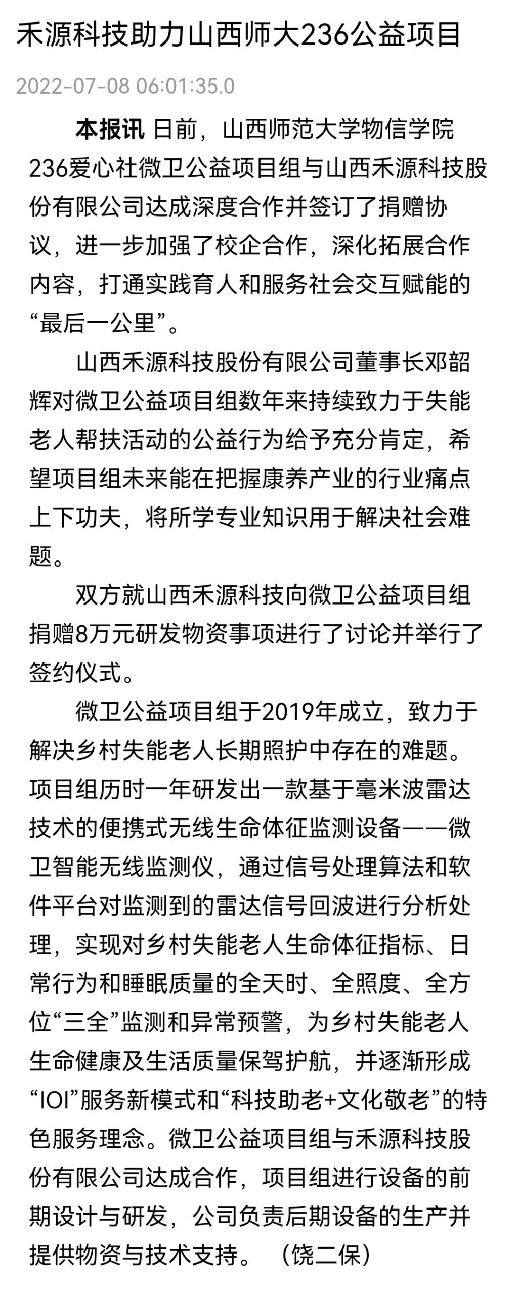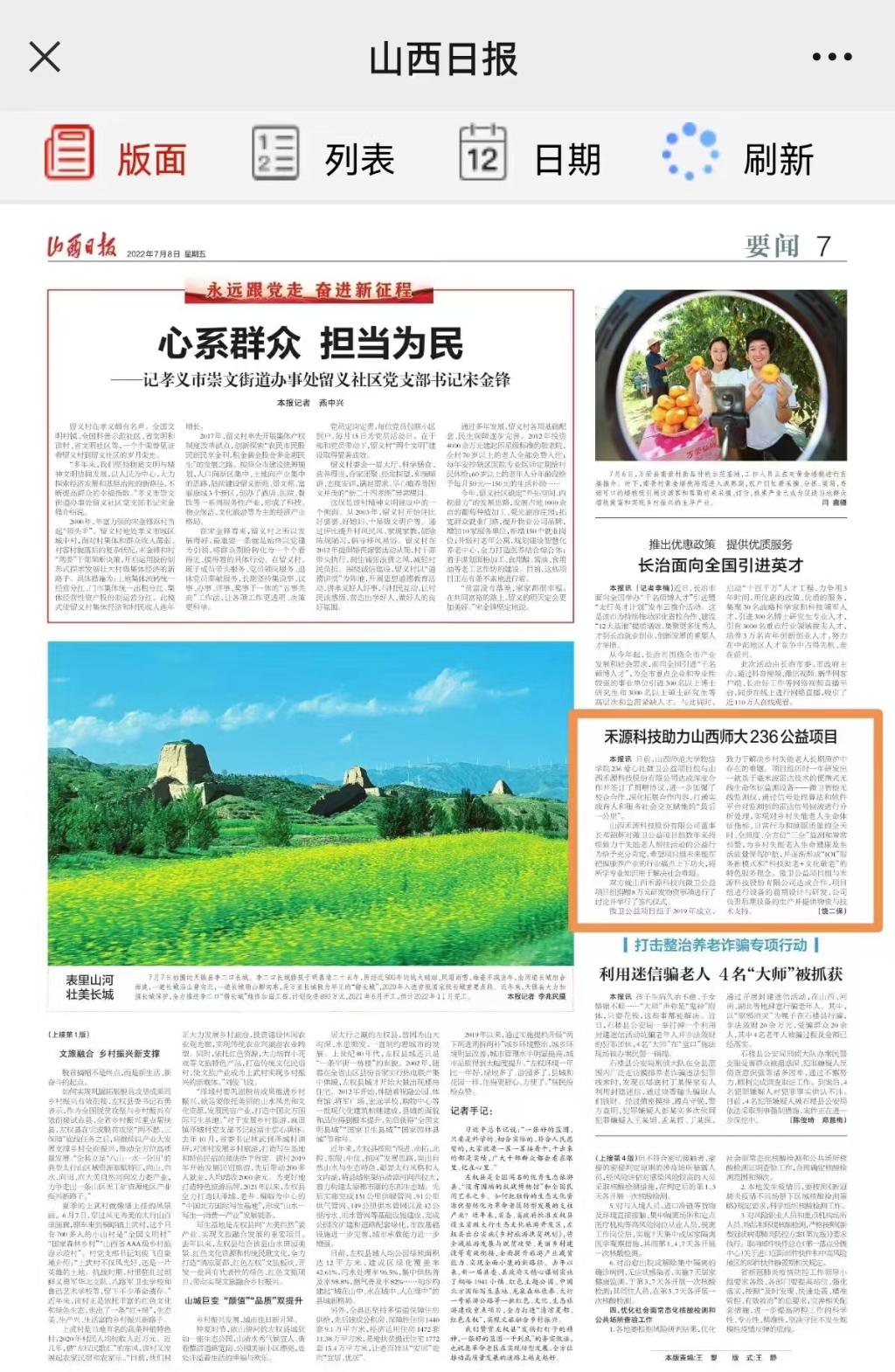 7月8日,山西日报要闻第7版以“禾源科技助力山西师大236公益项目”为题,报道了黄色漫画