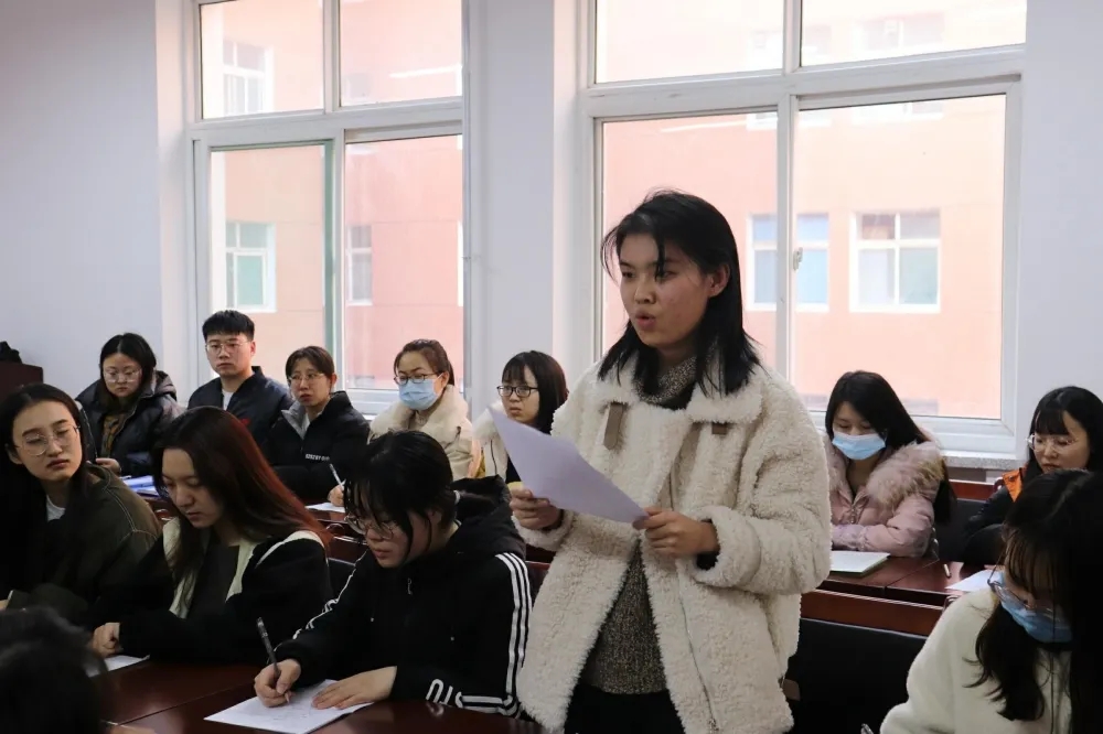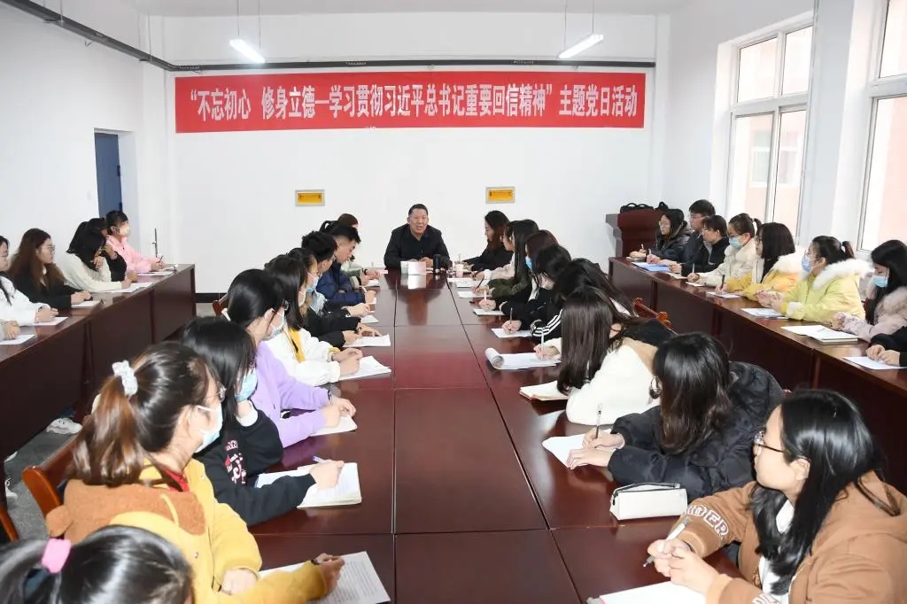 活动中,郭桂春带领全体党员观看了黄大年同志先进事迹视频,学习了习近平总书记给全国高校黄大年式教师团队代表的回信。随后,部分党员代表分享了心得感悟。党员邱佳怡说,学院很多老师也同样具有黄大年先生一样的品质,他们十分关心学生的思想状况和学习进度,耐心为学生讲解习题,经常在实验室忙碌到深夜,用实际行动践行着“学为人师,行为世范”。党员赵味在发言中表示,作为师范专业学生,应该树立“弘扬高尚师德,潜心立德树人”的理念,不断丰富完善自己,以赤诚之心、奉献之心、仁爱之心投身教育事业。