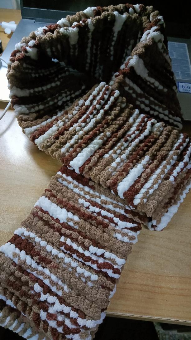 这是给山区贫困小学的爱心围巾,在织围巾的过程中需要有耐心,每织完一排都会看看自己的成果,满满的成就感,每一针都在调节松紧,尽量做到力度保持一致,织出来的围巾才整齐不漏风,真心希望将这份爱心传递给他们,让他们感受到冬日的温暖,这个冬天不再寒冷,其实“每一个孩子都是一朵花,只是花期不同。”总会有一天绽放出属于自己的灿烂,希望我们的一份爱心,可以温暖整个人间。