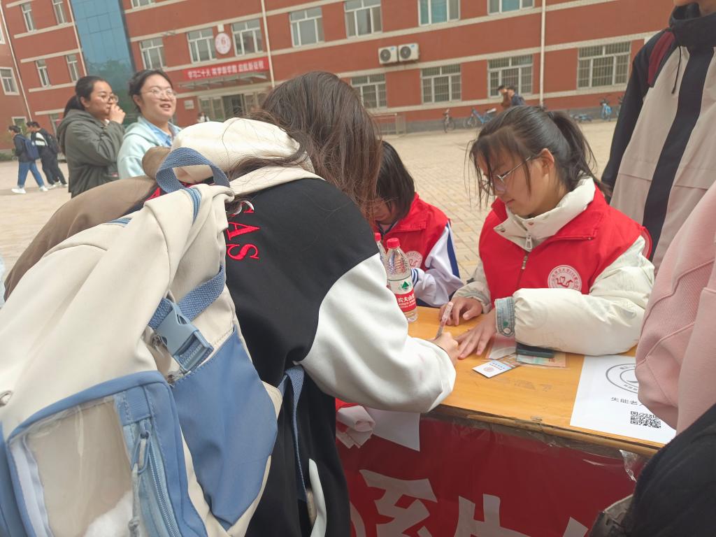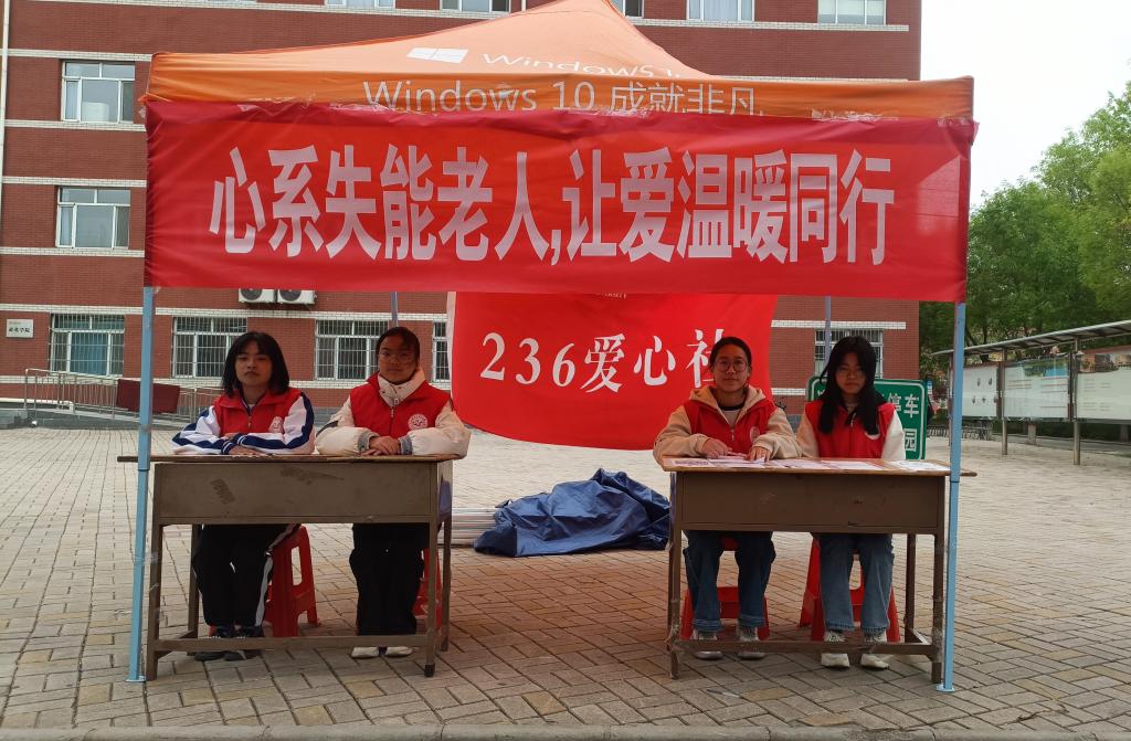 为提高同学们尊老敬老意识、参与公益事业的热情和积极性,4月28日,236爱心社在我校南区6号教学楼前举办“心系失能老人,让爱温暖同行”活动。