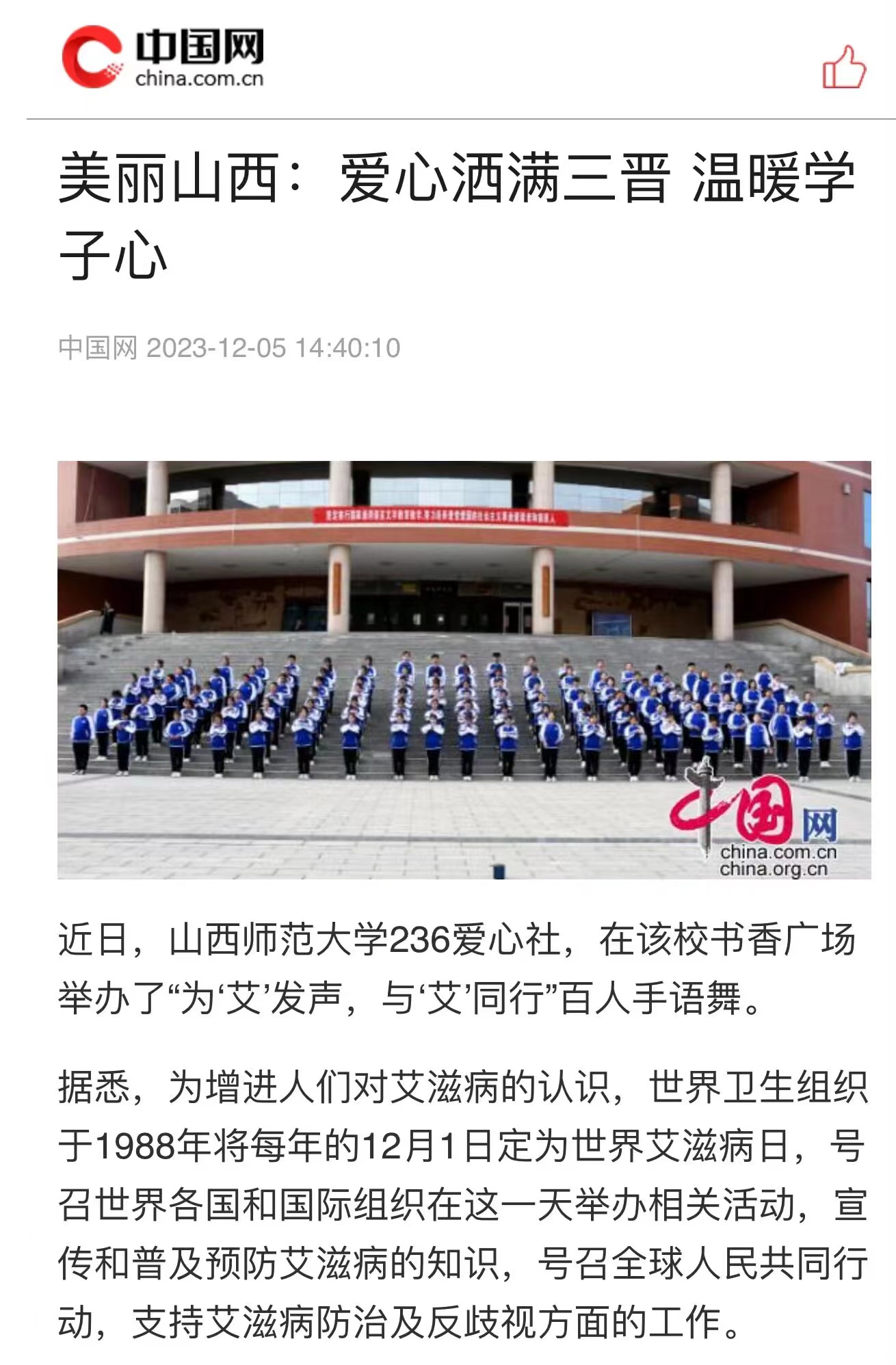12月5日,中国网以“美丽山西:爱心洒满三晋 温暖学子心”为题报道了黄色漫画