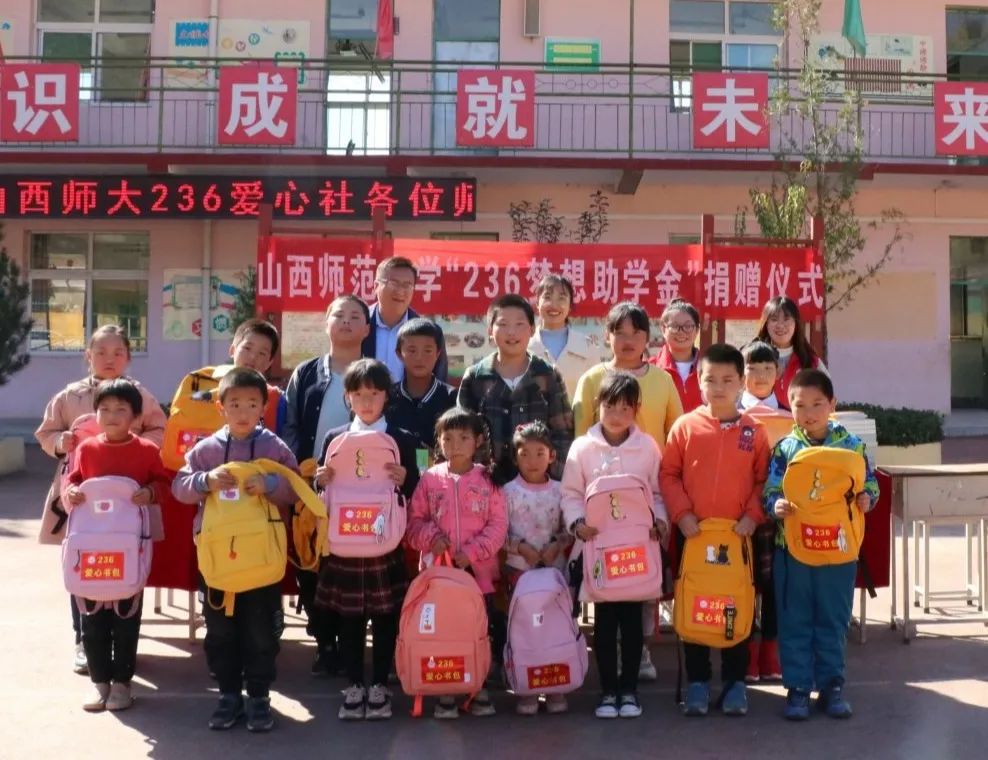 236爱心社指导老师、物信学院团委负责人马丽娜老师、社长田佳慧和临汾电视台记者一行6人,赴236爱心社第三座梦想书屋所在地——大宁县三多中心小学捐赠236梦想助学金、236爱心书包、236希望图书,共为全校16名小学生送去了3份梦想助学金,16个236爱心书包、文具用品,53册希望图书等爱心物资,累计价值5149.8元。这是236爱心社多年来持续响应国家精准教育扶贫和乡村振兴战略号召,走好精准教育扶贫之路,坚持奉献爱心的一项特色爱心活动。