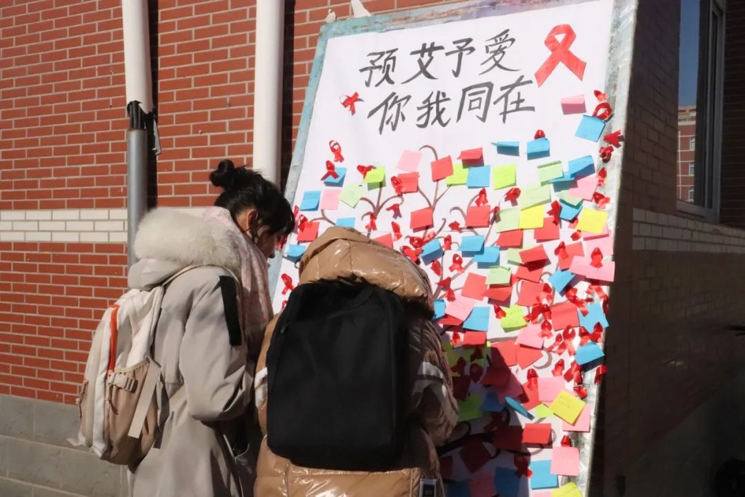 236爱心社帮助大家拍摄视频,通过视频记录和传播对艾滋病病人的尊重与鼓励;“励耕”青协的与“艾”同行和为“艾”传递环节,大家有的在便签上写下祝福,有的则通过在贴满红丝带的树形版前拍摄祝福视频,为艾滋病患者送上自己的爱。